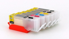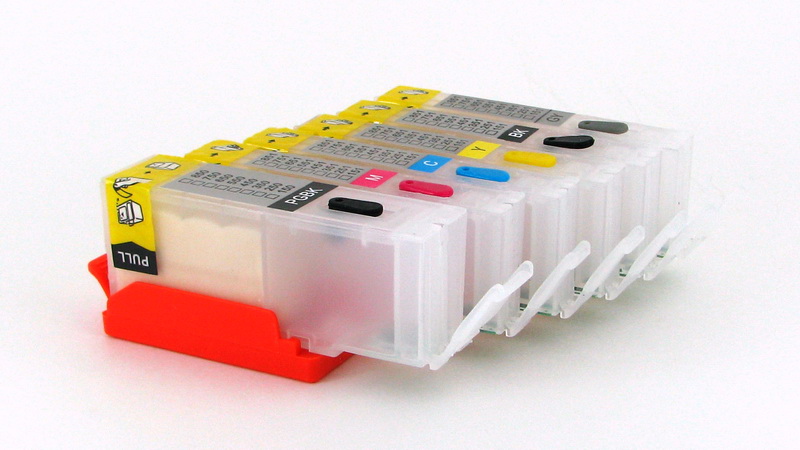 Experienced refillers know that the best cartridges to use are Canon OEM cartridges. These provide the highest quality construction that aftermarket carts fail to match. With real Canon OEM cartridges you get the most reliable inkflow and is generally recommended. For this generation of printer, the tanks are opaque ( Black) and one is unable to see what is happening. Refilling is best done by modifying the OEM tanks and weighing and predispensing an estimated amount of ink prior to refilling.