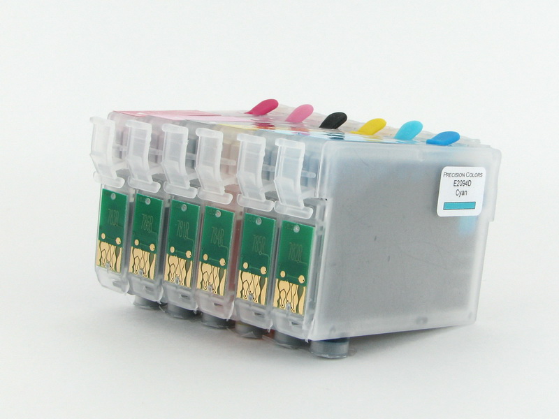 Set of 6 Prefilled Cartridges with AutoReset Chips ready to install with no preparatory work. Drop in and print! As inexpensive as compatibles yet refillable!