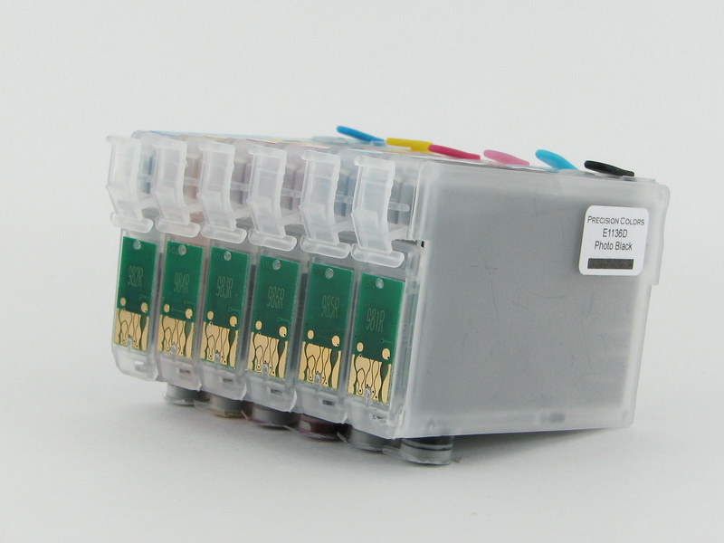 Set of 6 Prefilled Cartridges with AutoReset Chips ready to install with no preparatory work. Drop in and print! As inexpensive as compatibles yet refillable!
