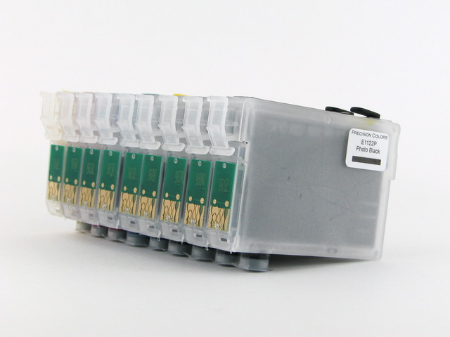 Set of 9 Prefilled Cartridges with AutoReset Chips ready to install with no preparatory work. Drop in and print! As inexpensive as compatibles yet refillable!